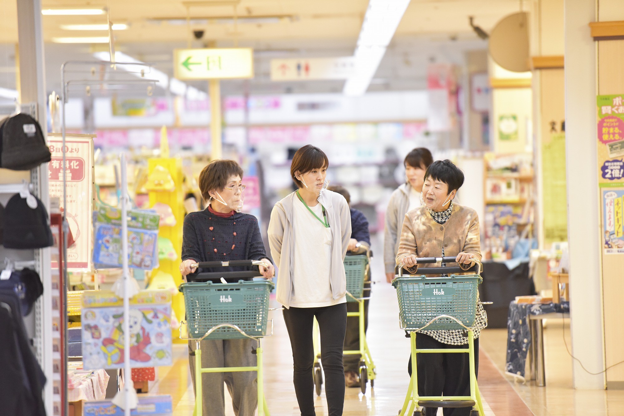 イズミヤ内へ移動。カートを押してウォーキング&お買い物。楽しみながら機能訓練を行います。